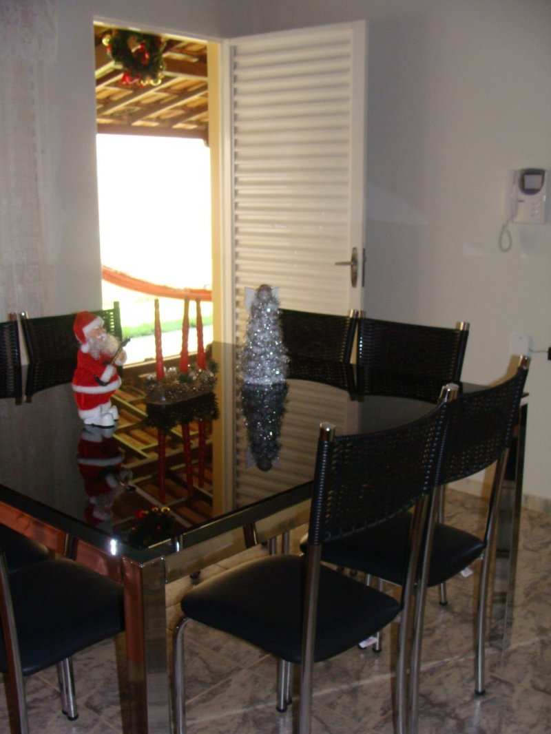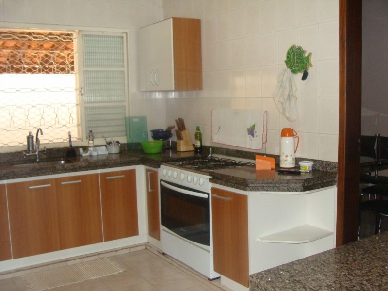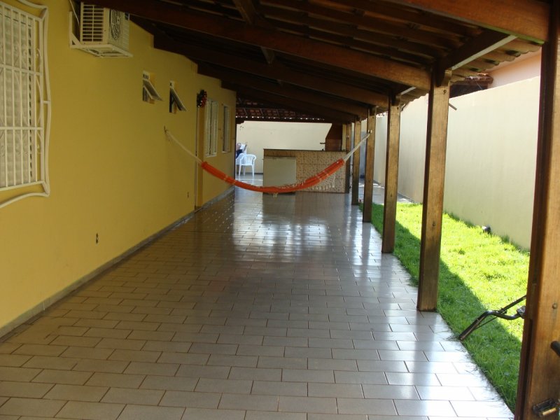 Casa composta por 3 quartos, sendo um deles suíte com ventilador de teto, ar condicionado, banheiro todo azulejado com box e pia com armário planejado. Banheiro social, sala, copa com porta de acesso à garagem. Cozinha com bancada de mármore e armários embutidos. Varanda na frente, lateral e fundos. Quintal, espaço gourmet com balcão, pia e churrasqueira. Área de serviço coberta e edícola com banheiro.