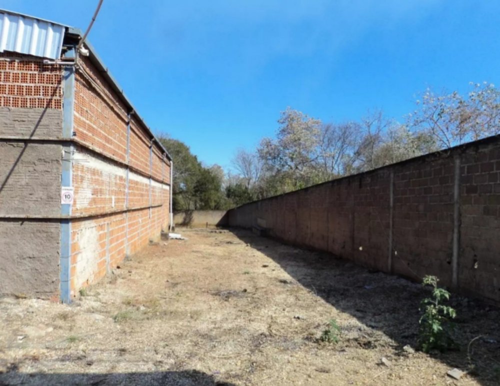 No lote anexo existe um galpão com aproximadamente 150,00 m² de área construída coberta por estrutura metálica e telhas de zinco, com área edificada com uma sala e portão de acesso com largura e altura para caminhões.