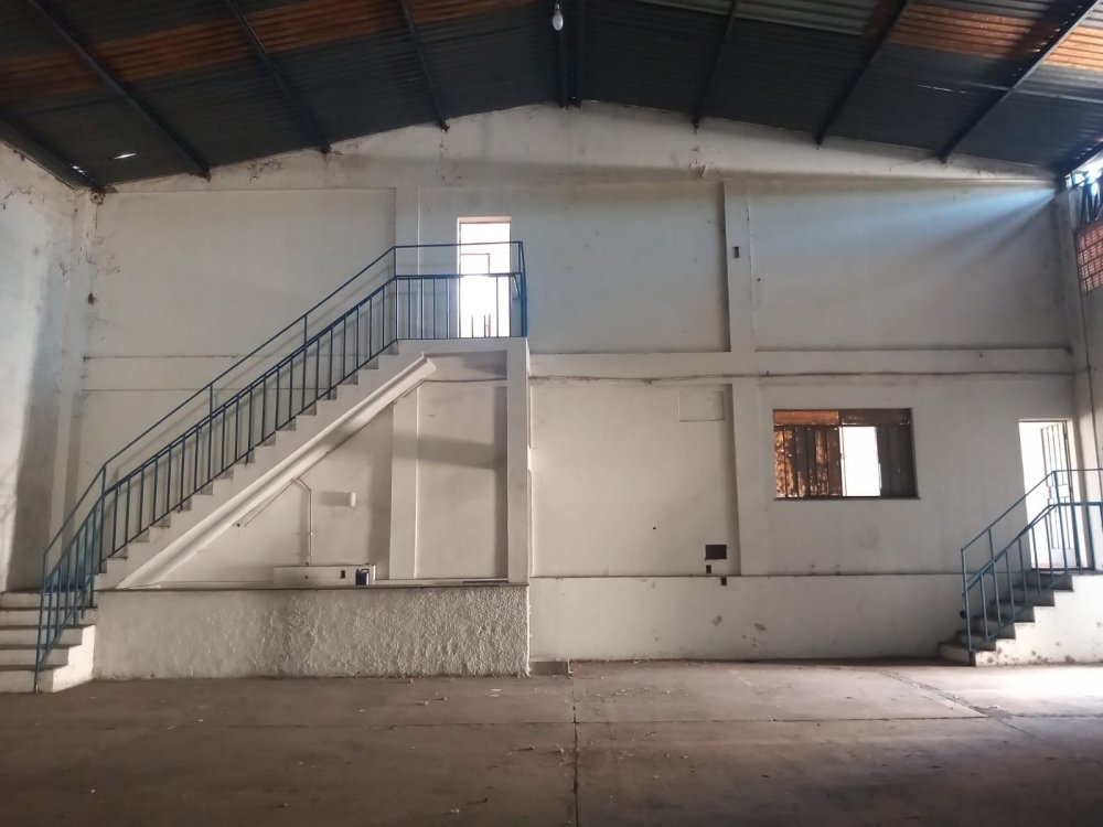 Sua área construída é de aproximadamente 1.382m² coberta por estrutura metálica e telhas de zinco, com um piso em concreto com base para transito de veículos de carga e portão de acesso com largura e altura para caminhões.